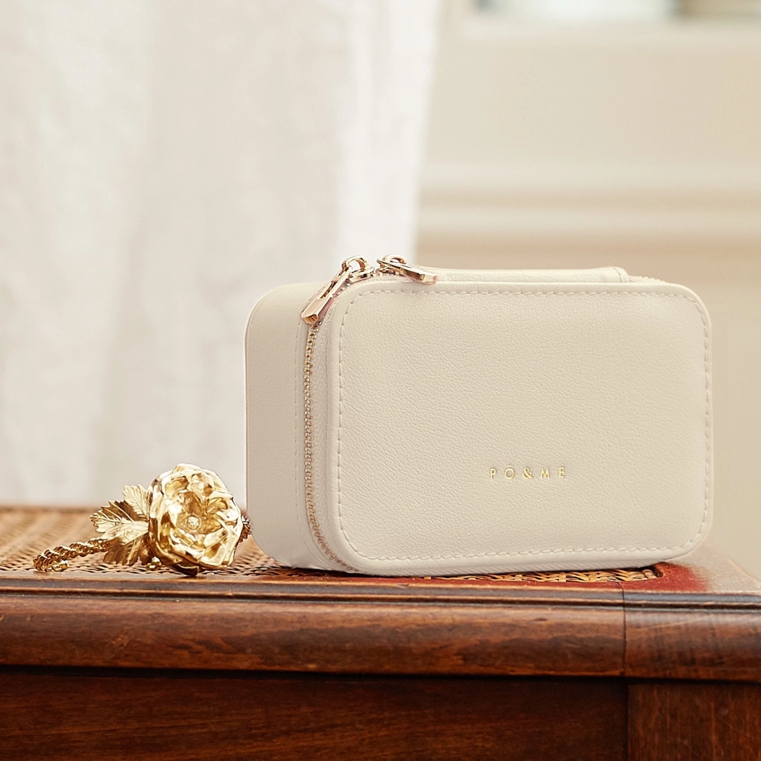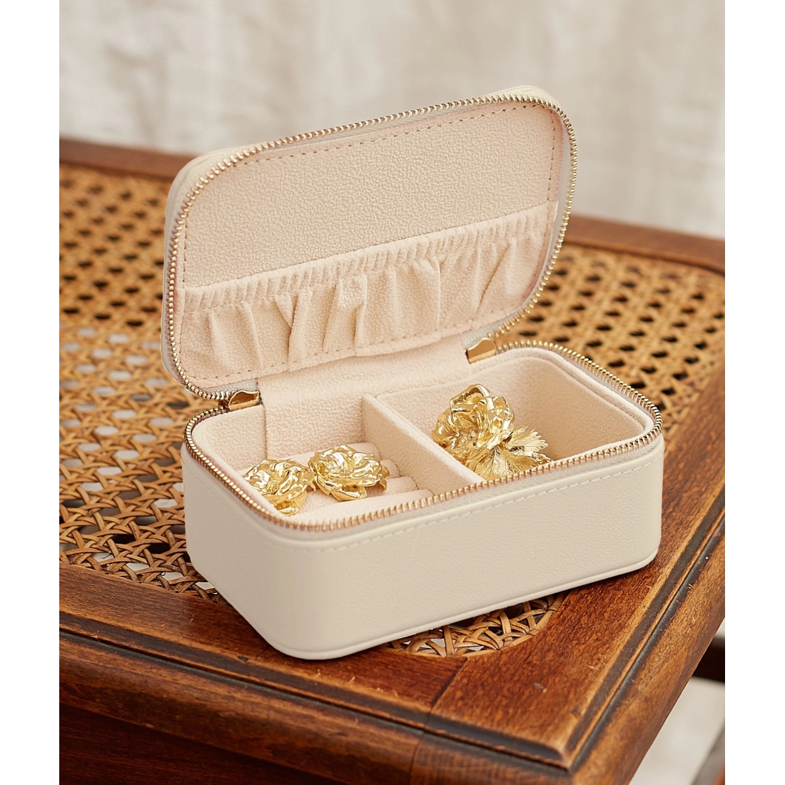 • Intérieur : Peau de pêche façon velours, compartiments organisés pour bagues et bijoux, poche élastique pour accessoires précieux