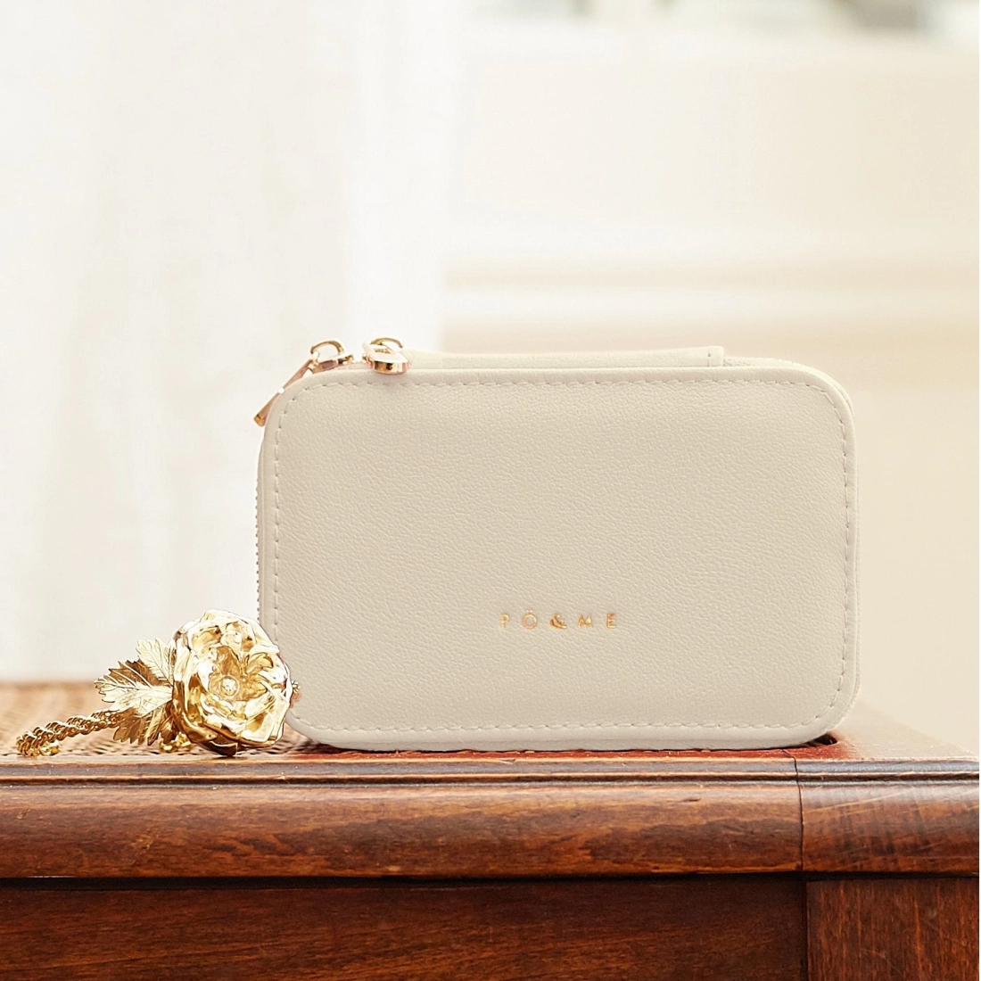 • Extérieur : 100% cuir de vachette lisse, frappé du logo PÖ&ME doré, fermeture zippée dorée