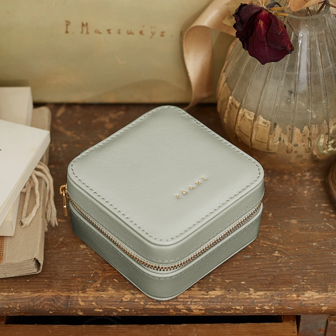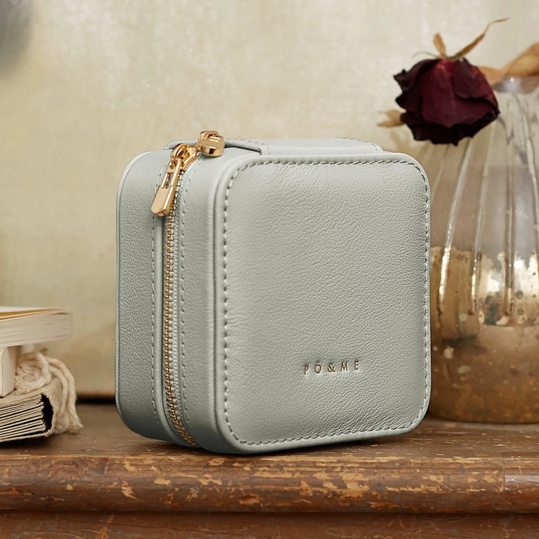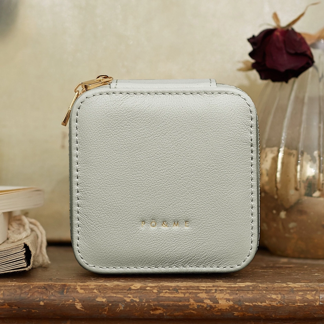 • Surpiqûres délicates et logo PÖ&ME doré