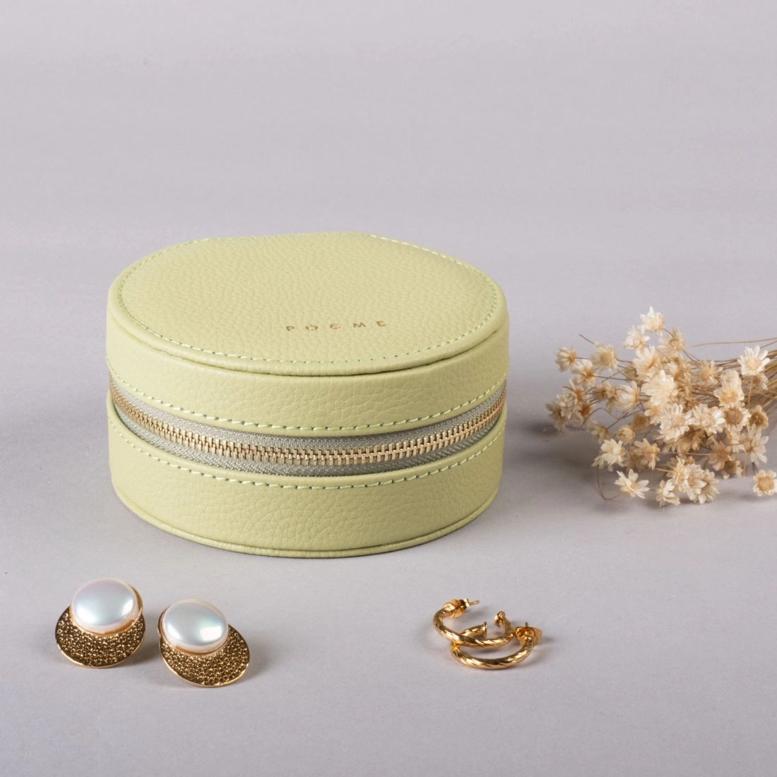 • Extérieur : 100% cuir de vachette grainé, surpiqué et frappé du logo PÖ&ME doré