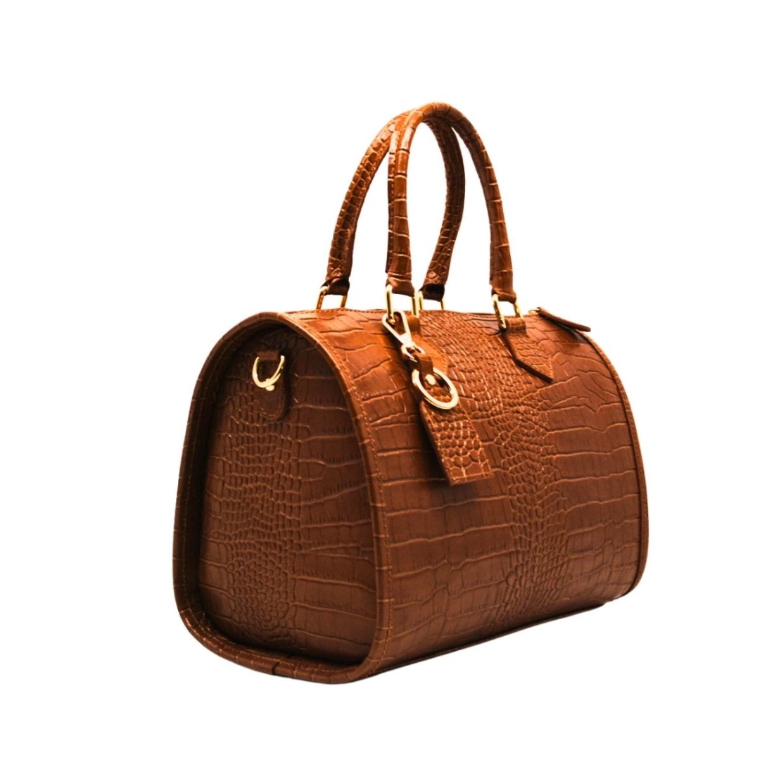 Sac cuir vachette effet croco. Forme bau. En plus de ses deux poignées, elle dispose d'une bandoulière amovible et ajustable qui permet différentes options de porté. Doublure polyester,Poche zippée au dos à intérieures, finition dorée. Fermeture zippée.