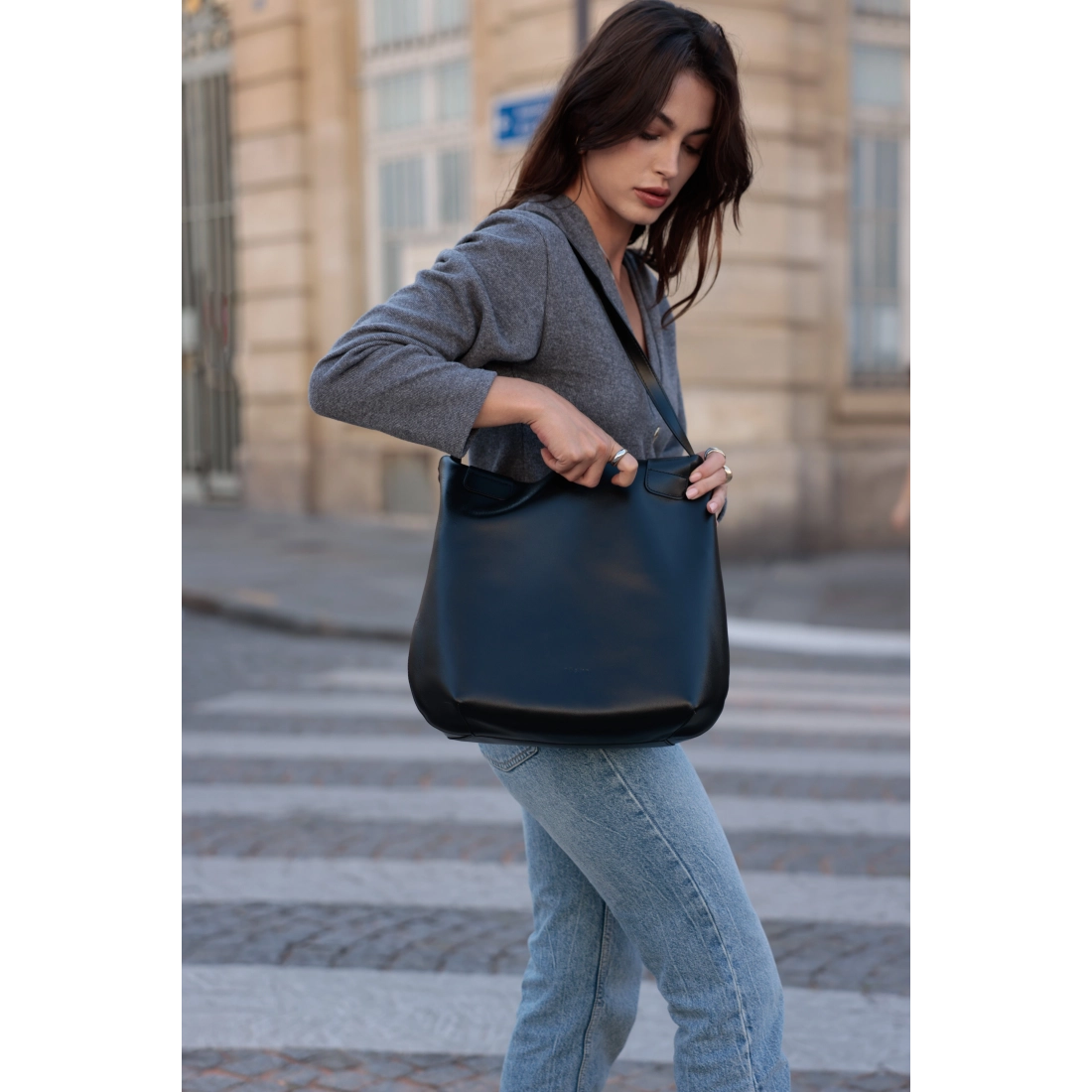 Disponible en coloris intemporels — noir, marron et camel — *L’Éternelle Compagne* s’adapte à tous les styles vestimentaires, du plus casual au plus chic. Polyvalent et spacieux, ce sac devient un compagnon idéal pour vos journées actives, vos rendez-vous professionnels ou vos sorties citadines, ajoutant une touche de raffinement à chaque moment de la journée.
