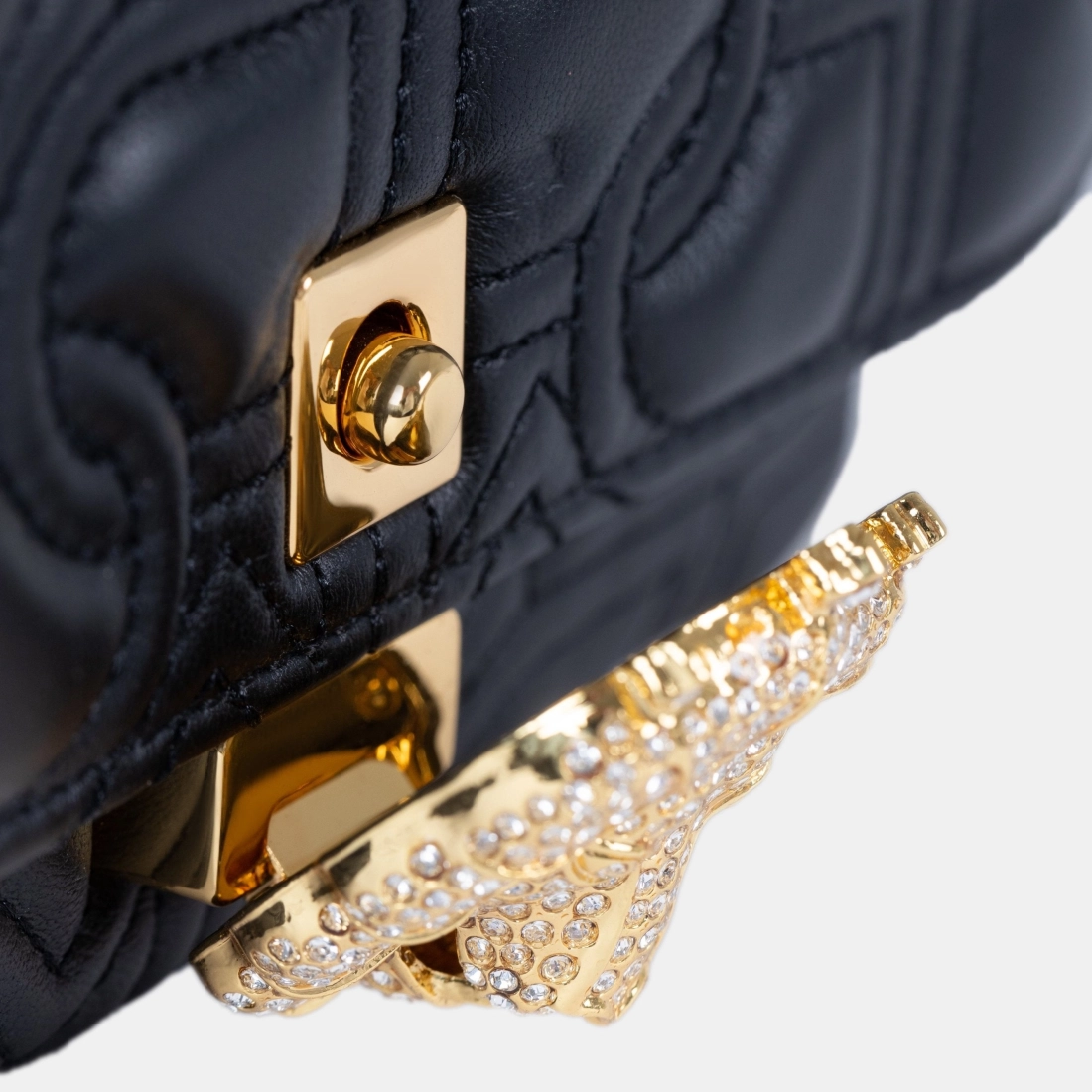 • Fermeture : Rabat aimanté fermé par un fermoir en forme de tête de lion couronnée, inondé de pierres style diamant