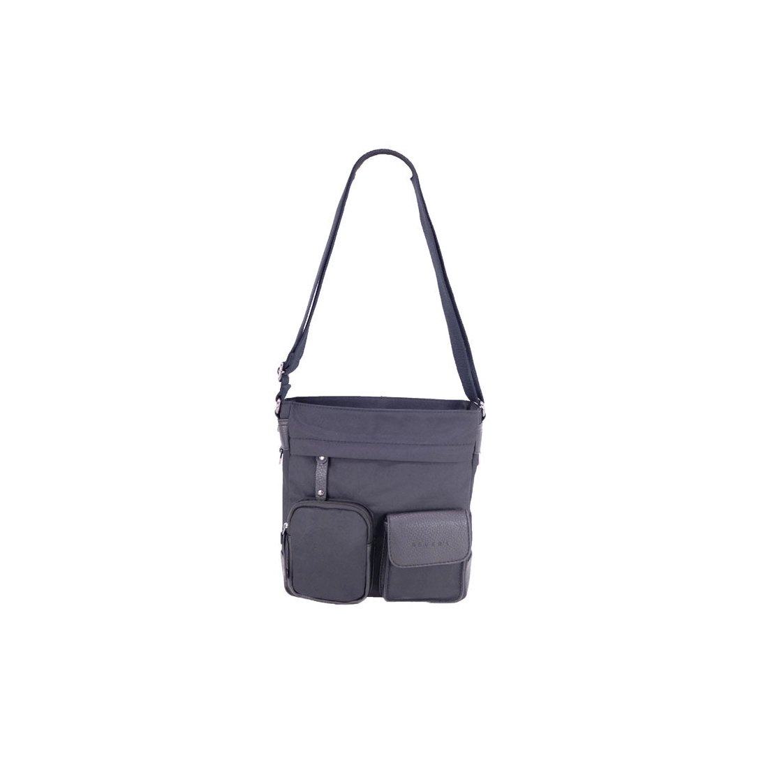 Description : Sac bourse en textile avec garniture synthétique. Bandoulière réglable, poche zippée avant. Doublure textile avec poche zippée et fermeture à glissière.