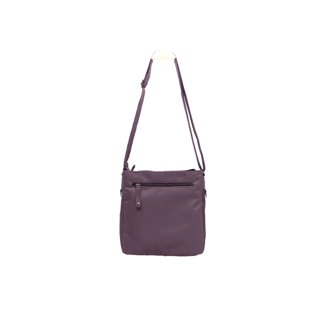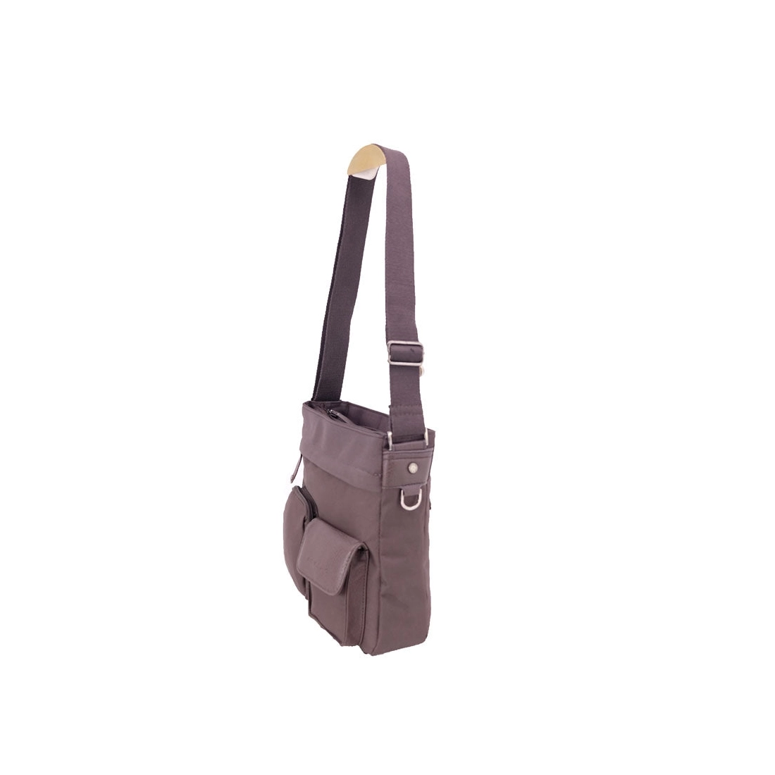 • Description : Sac en textile avec 3 poches devant (une avec rabat et deux avec fermeture à glissière). Bandoulière réglable. Doublure textile avec poche zippée intérieure.