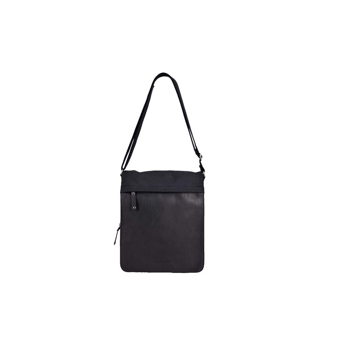 • Description : Sac besace à rabat avec bouton‑pression, garniture synthétique. Poche zippée sur le rabat et au dos du sac. Bandoulière réglable en textile et poches zippées à l’intérieur protégées par une fermeture à glissière.