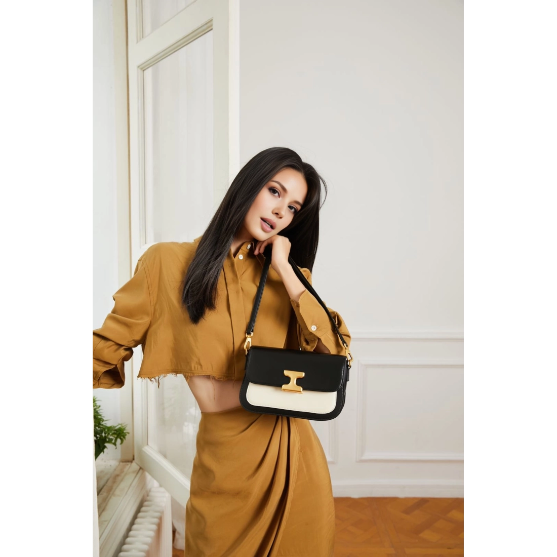 - Fermeture : Rabat avec bouton pression sous une boucle dorée
