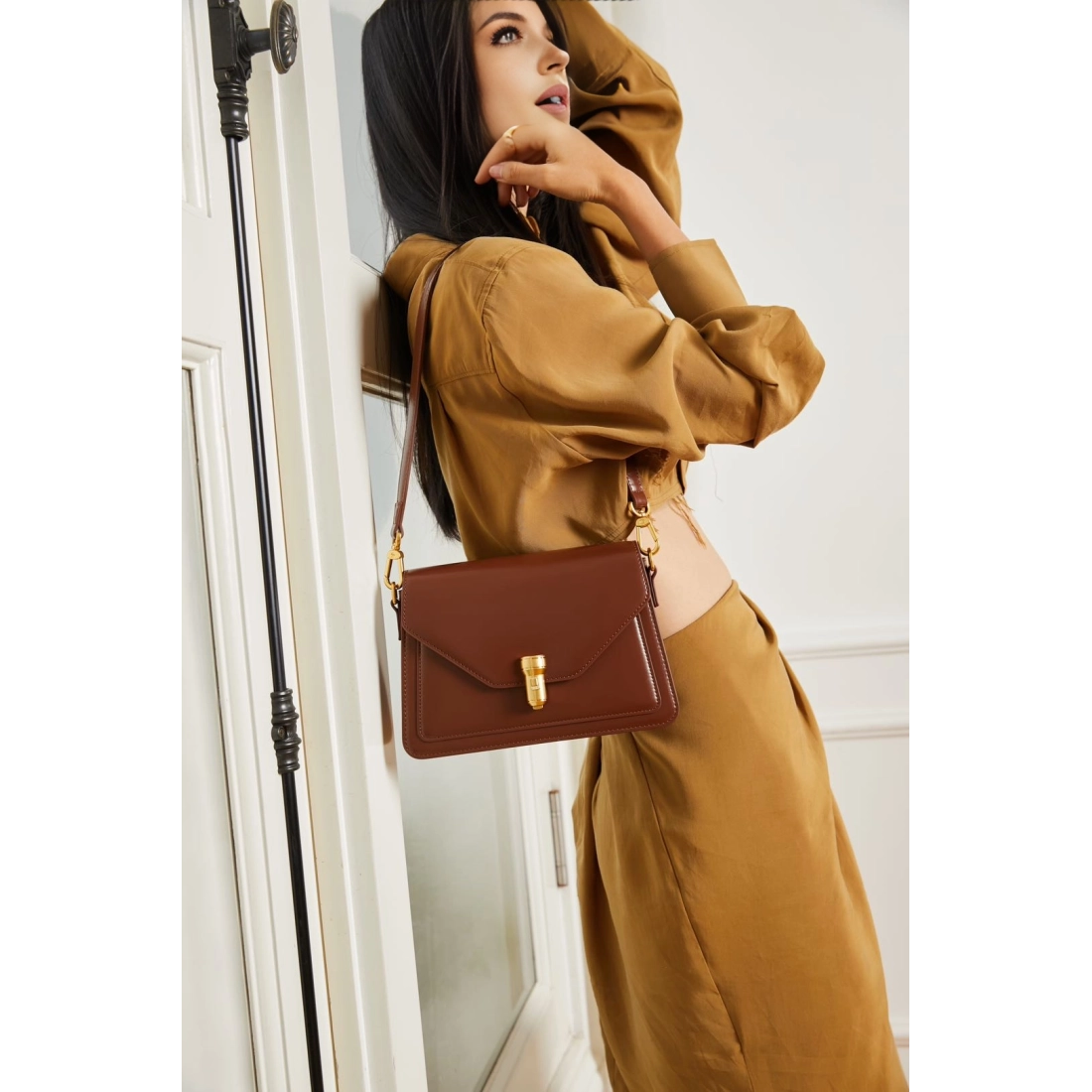Compartiments : Un compartiment principal sécurisé par un élégant rabat aimanté. Deux poches intérieures dont une plate et l’autre à zip pour accueillir vos essentiels.