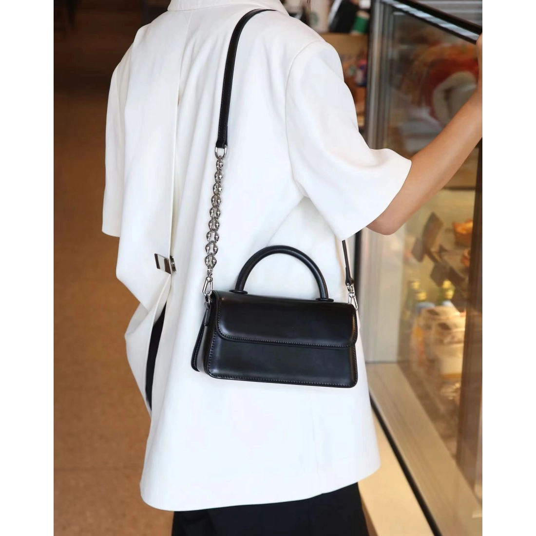 Porté : Élégante bandoulière amovible mi-cuir mi-chaîne dorée en acier...